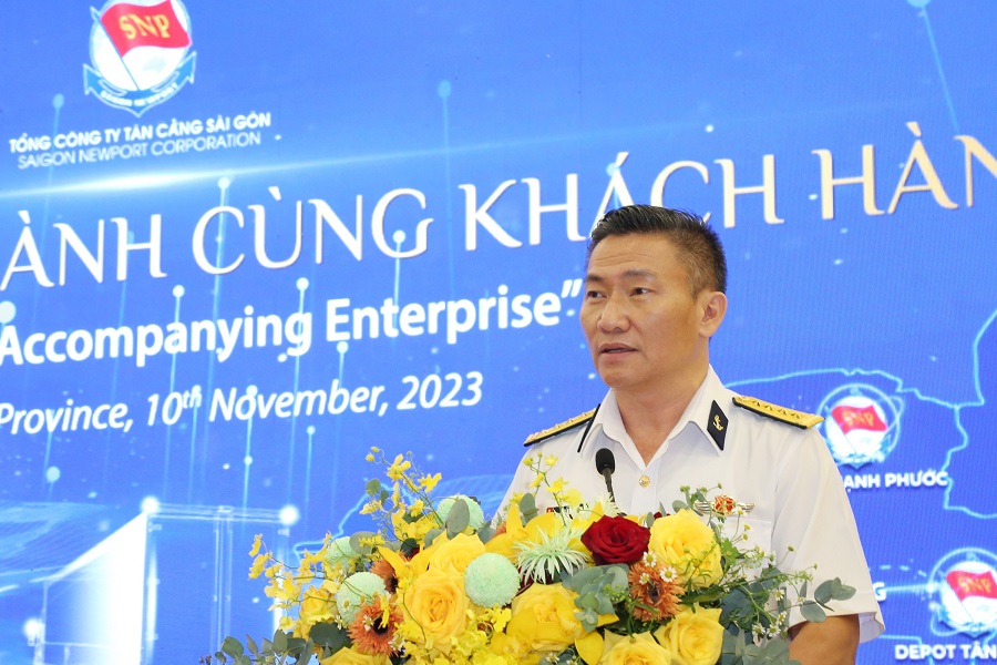 Thiếu tá Phạm Thanh Sơn, Phó giám đốc ICD Tân cảng Sóng Thần đã giới thiệu giải pháp logistics của Tân cảng Sài Gòn tại Bình Dương, xác định ICD Tân cảng Sóng Thần là trọng tâm.