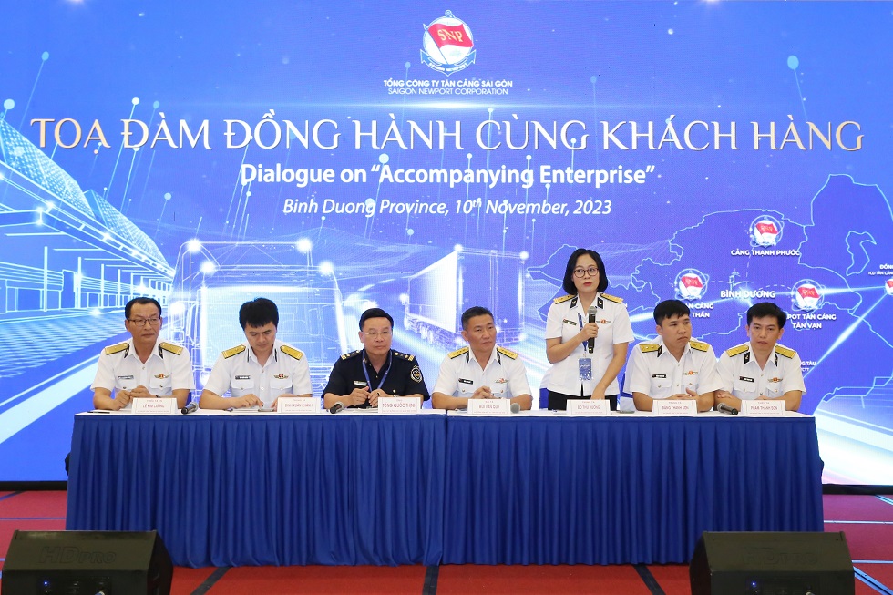 Đại diện Tân cảng Sài Gòn và Cục Hải quan tỉnh Bình Dương giải đáp các ý kiến của đối tác, khách hàng
