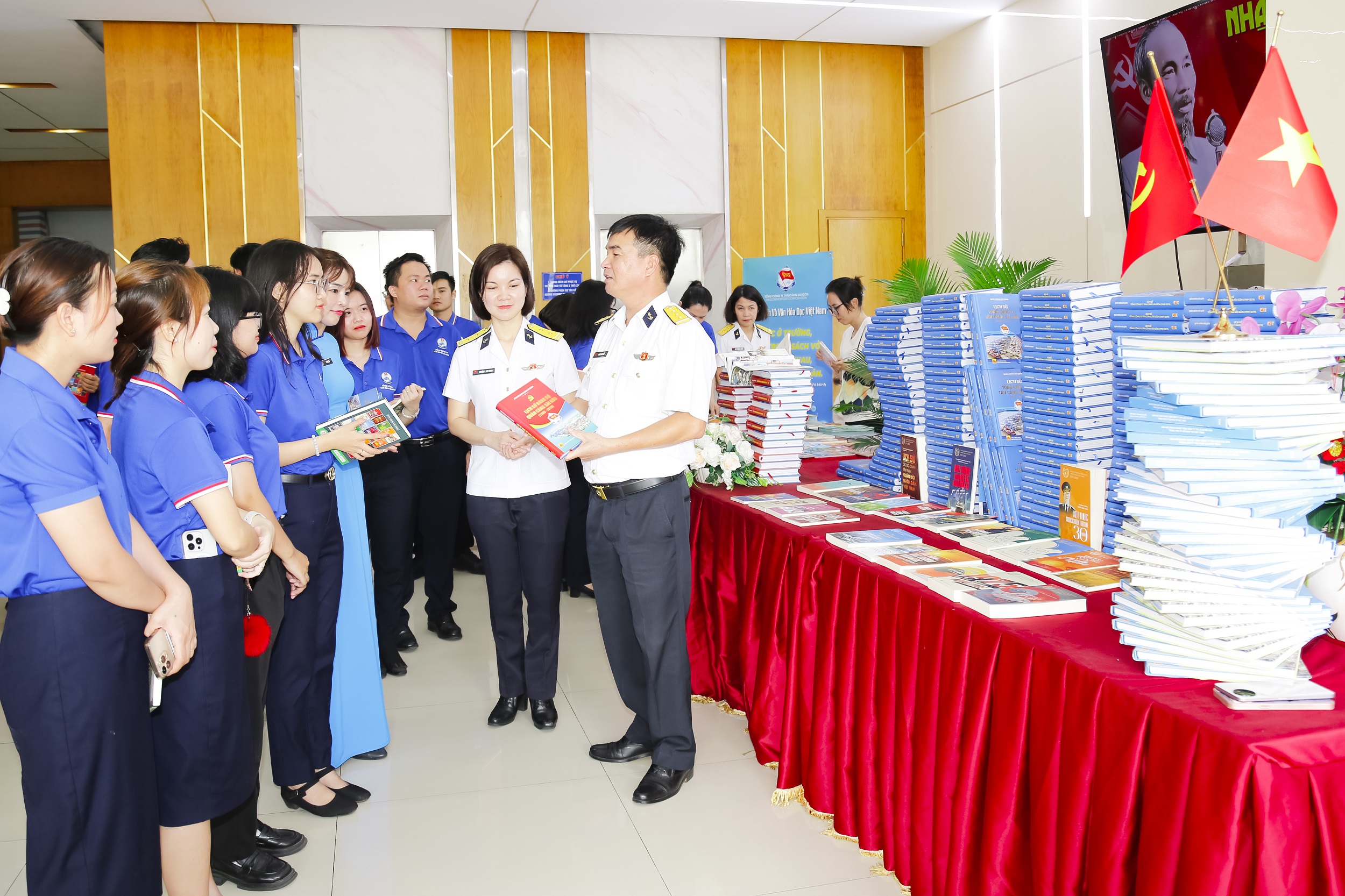 Tại chương trình, cán bộ người lao động trong Tổng công ty và khách hàng đến giao dịch tại cảng đã mua nhiều cuốn sách ý nghĩa.