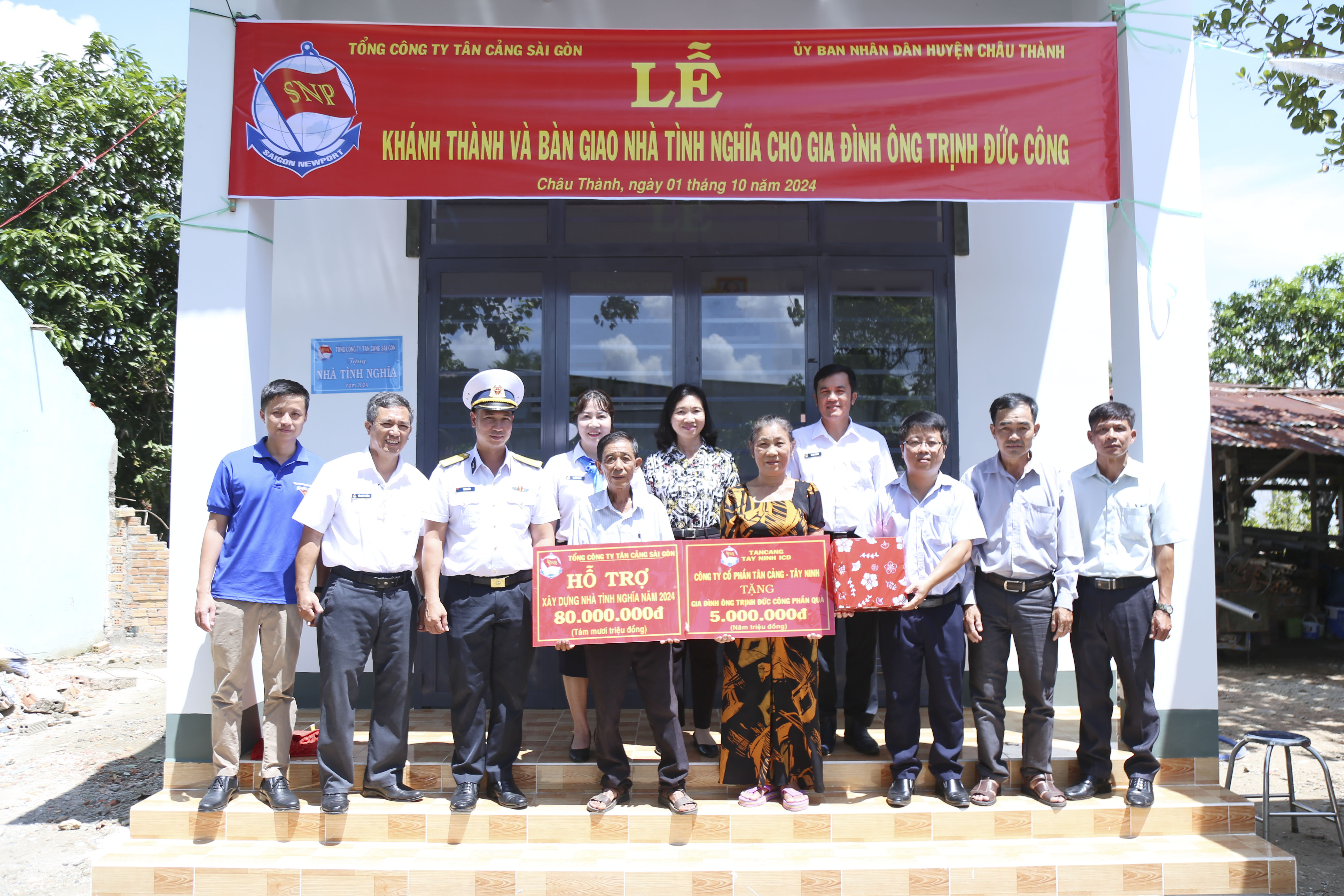 Sáng 1/10, tại xã An Cơ, huyện Châu Thành, tỉnh Tây Ninh, thừa ủy quyền của Tổng công ty Tân cảng Sài Gòn, Công ty cổ phần Tân cảng Tây Ninh phối hợp với Sở Lao động - Thương binh và Xã hội tỉnh Tây Ninh và chính quyền địa phương tổ chức khánh thành, bàn giao nhà tình nghĩa tặng gia đình ông Trịnh Đức Công.