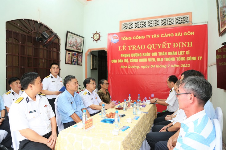 Dịp này, TCT Tân cảng Sài Gòn nhận phụng dưỡng bà Lê Thị Lai, sinh năm 1953, sinh sống tại phường Bình Hòa, TP. Thuận An, tỉnh Bình Dương. Bà Lai là vợ liệt sĩ Nguyễn Tiến Vượng và là mẹ đồng chí Nguyễn Văn Thanh, hiện đang công tác tại Xí nghiệp cơ giới xếp dỡ Tân cảng, thuộc TCT Tân cảng Sài Gòn.