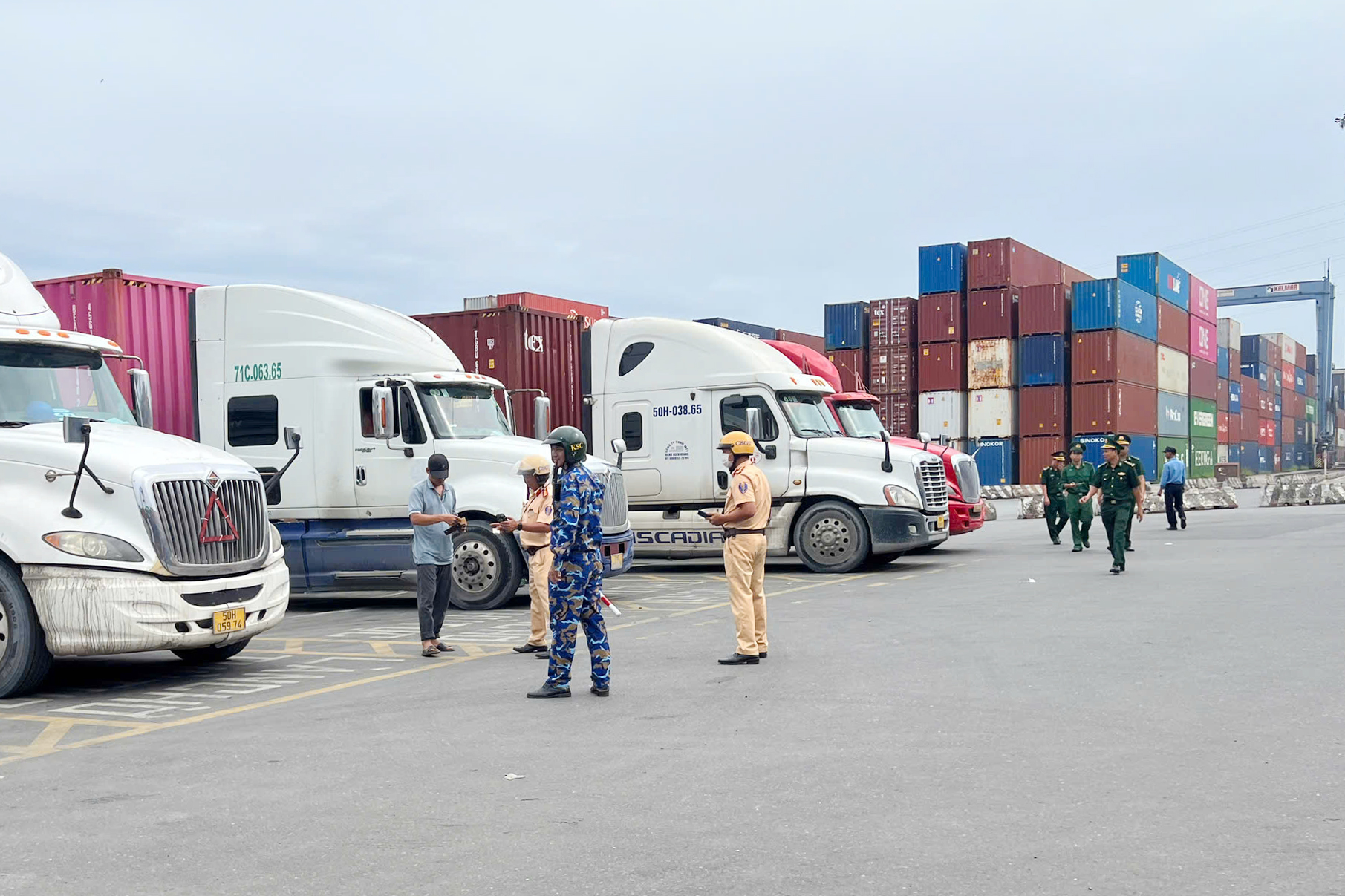 Đối với các phương tiện vận chuyển hàng hóa ra, vào các cảng, lực lượng chức năng kiểm tra việc tàng trữ vũ khí, công cụ hỗ trợ trái phép, vật liệu nổ và chấp hành luật an toàn giao thông…