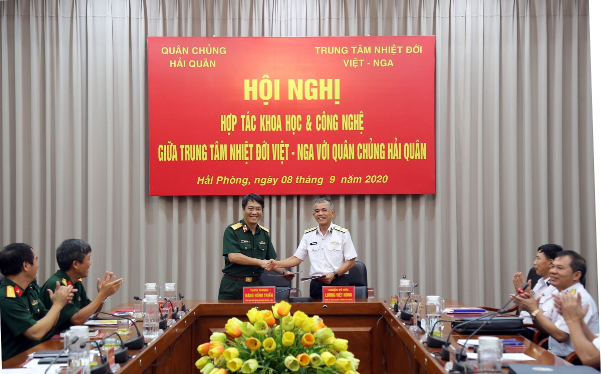 Chiều 8-9, tại Hải Phòng, Hội nghị hợp tác khoa học và công nghệ giữa Quân chủng Hải quân và Trung tâm Nhiệt đới Việt-Nga được tiến hành. Chuẩn Đô đốc Lương Việt Hùng, Phó Tư lệnh Hải quân và Thiếu tướng Đặng Hồng Triển, Tổng Giám đốc Trung tâm Nhiệt đới Việt-Nga đồng chủ trì.