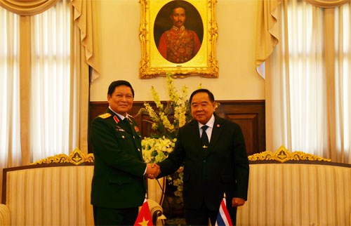 Hoan nghênh kết quả hội đàm giữa hai đoàn, Thủ tướng Pra-dút Chan-ô-cha đánh giá cao kết quả hợp tác quốc phòng hai nước thời gian qua và cho rằng trong bối cảnh hiện nay Quân đội hai nước cần tăng cường hợp tác hơn nữa trên cơ sở triển khai hiệu quả các lĩnh vực hợp tác hiện có, đồng thời tìm kiếm các lĩnh vực mới tiềm năng; khẳng định sẽ ủng hộ và tạo mọi điều kiện thuận lợi cho hợp tác quốc phòng ngày càng phát triển. Thủ tướng Pra-dút Chan-ô-cha cho biết, sẽ chỉ đạo các Bộ, ngành liên quan tăng cường phối hợp, hợp tác với Việt Nam trong xử lý các vấn đề về ngư dân, trên cơ sở luật pháp quốc tế, và quan hệ hữu nghị giữa hai nước.