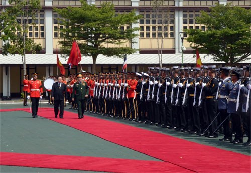 Hai Bộ trưởng duyệt đội danh dự Quân đội Thái Lan.