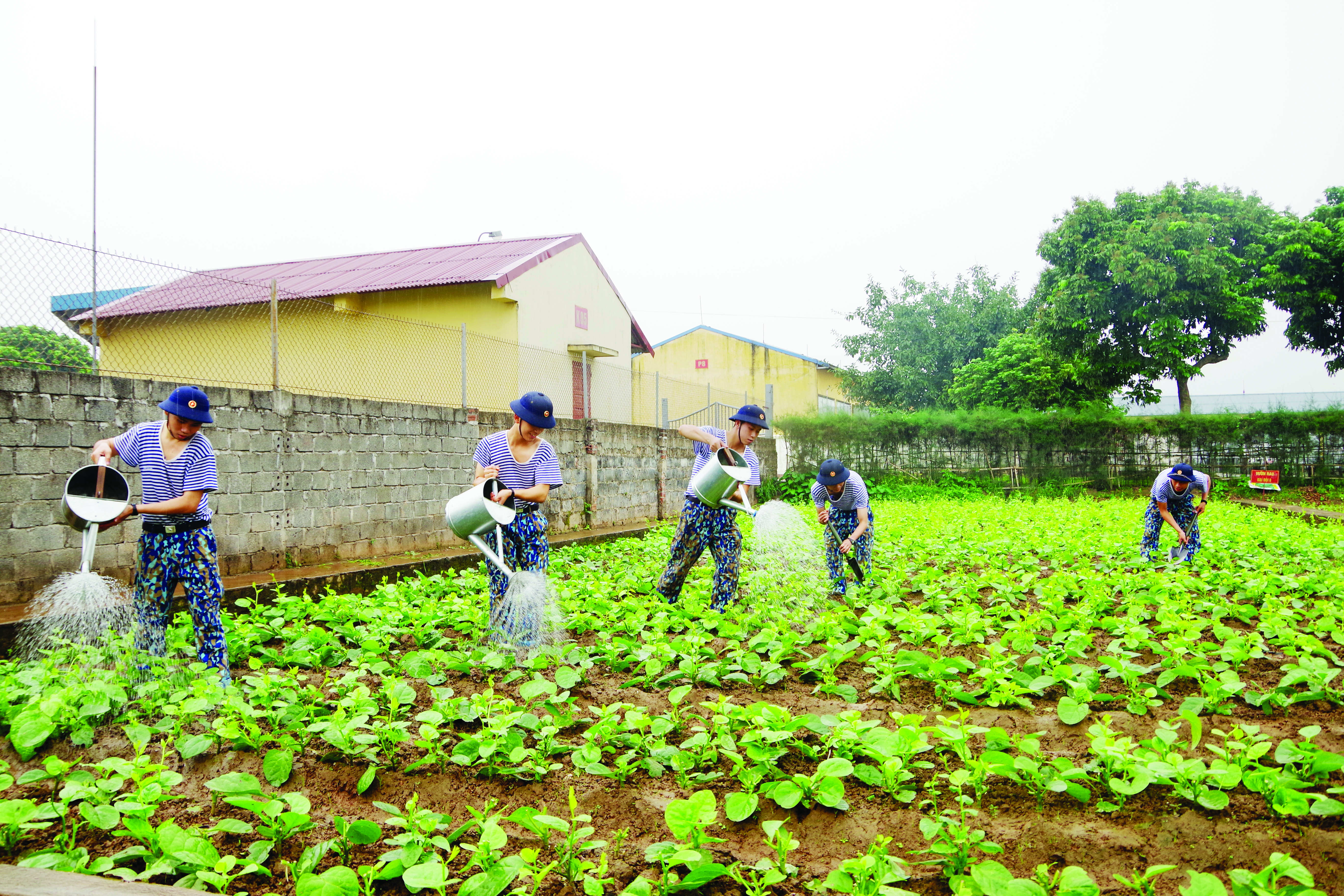 Chiến sĩ Tiểu đoàn 884 chăm sóc rau xanh