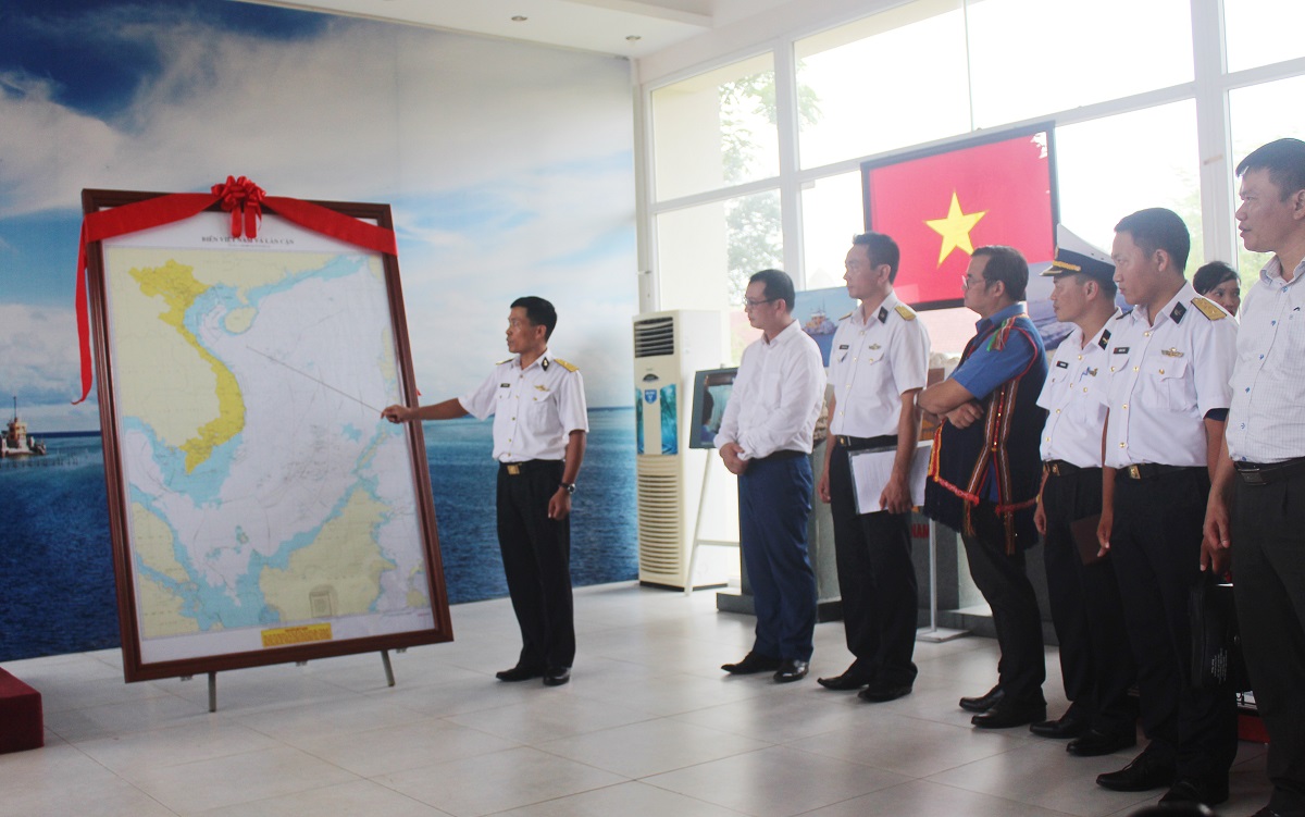 Các đại biểu nghe giới thiệu về biển, đảo Việt Nam trên hải đồ