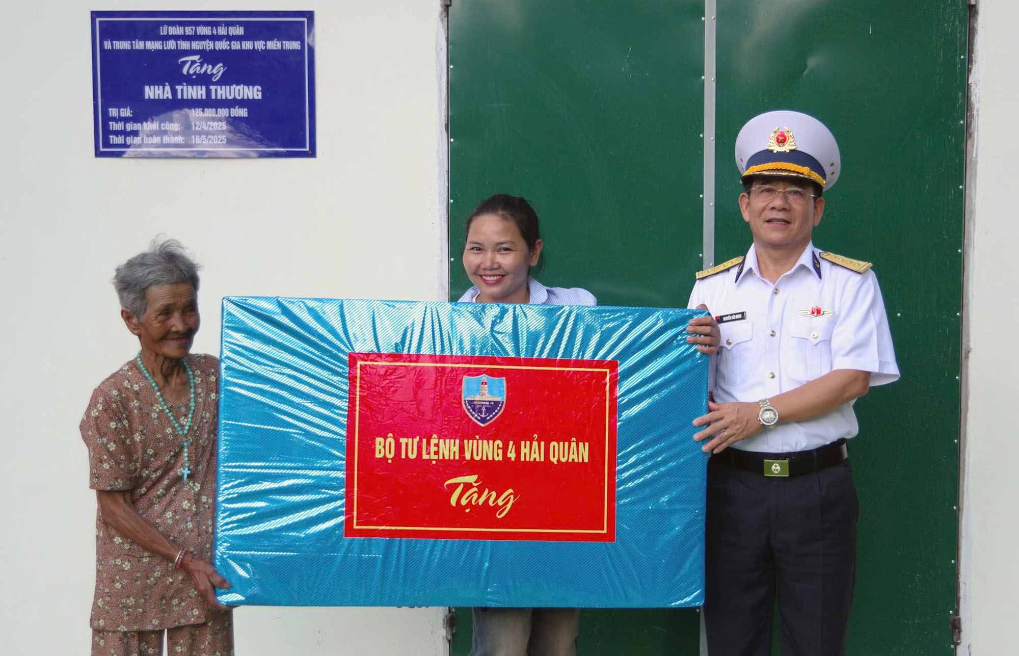 Dịp này, thủ trưởng Bộ Tư lệnh Vùng 4 Hải quân đã tặng 1 chiếc tivi trị giá 8 triệu đồng; Lữ đoàn 957 tặng 1 chiếc giường trị giá 3 triệu đồng; Hội phụ nữ Lữ đoàn 957 tặng chăn, gối cho gia đình chị Niếm.