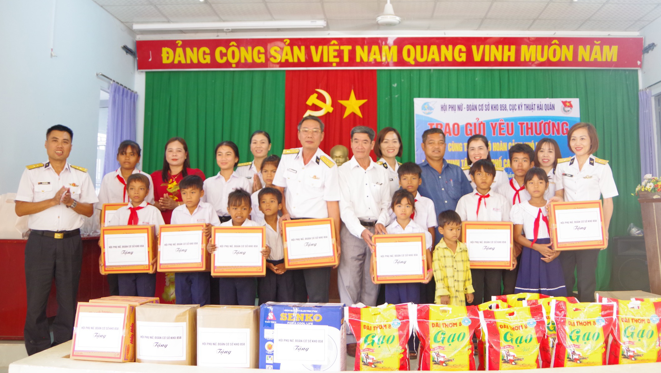 Sáng 6/3, Hội phụ nữ, Đoàn cơ sở Kho 858, Cục Kỹ thuật Hải quân tổ chức thăm, tặng quà học sinh có hoàn cảnh khó khăn tại xã Cam Thịnh Tây, TP. Cam Ranh, tỉnh Khánh Hòa.