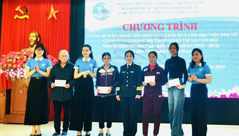 *Cũng trong sáng 6/3, tại thành phố Cẩm Phả, tỉnh Quảng Ninh, Hội Phụ nữ cơ sở Nhà máy X48, Cục Kỹ thuật phối hợp với Hội phụ nữ phường Quang Hanh và phường Cẩm Đông, thành phố Cẩm Phả, tỉnh Quảng Ninh tặng 5 phần quà trị giá 2,5 triệu đồng cho hội viên phụ nữ có hoàn cảnh khó khăn tại xã Cẩm Hải và xã Cộng Hòa, TP. Hạ Long.