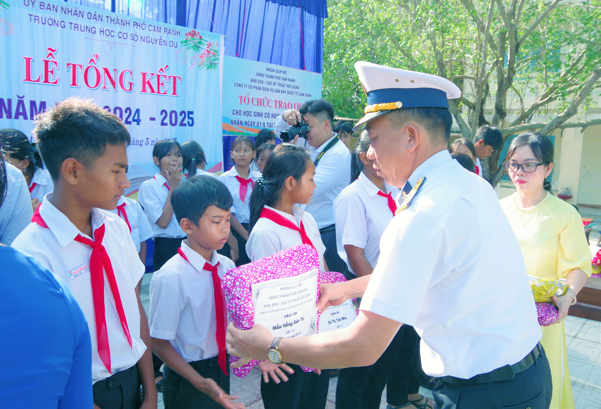 Sáng 27/5, tại xã Cam Phước Đông, TP. Cam Ranh, tỉnh Khánh Hòa, Kho 858, Cục Hậu cần - Kỹ thuật Hải quân phối hợp với chính quyền địa phương và các đơn vị đồng hành tổ chức tặng quà học sinh nghèo của Trường THCS Nguyễn Du nhân dịp tổng kết năm học 2024 - 2025.