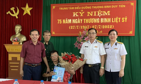 Ngày 19 và ngày 20/7, đại diện Phòng Chính sách, Cục Chính trị Hải quân đã đến thăm và trao quà của Quân chủng Hải quân tới các đồng chí thương binh, bệnh binh, gia đình liệt sĩ tại TP. Hải Phòng, tỉnh Nam Định và Trung tâm Điều dưỡng thương binh Duy Tiên, tỉnh Hà Nam.