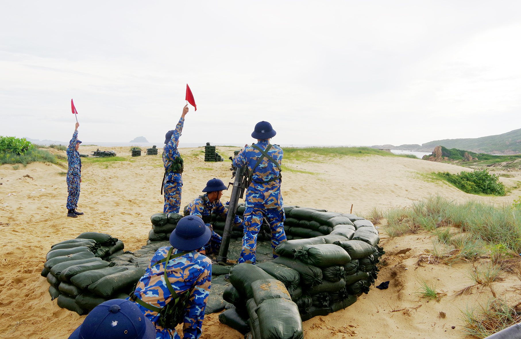 Chúng tôi đến Lữ đoàn 101 đúng hôm thời tiết chịu ảnh hưởng của áp thấp nhiệt đới. Vùng trời Cam Lâm đang nắng như rang bỗng mưa như trút, vậy mà cán bộ, chiến sĩ Tiểu đoàn 863, 864, 865 và 868 vẫn miệt mài luyện tập để chuẩn bị cho đợt kiểm tra bắn đạn thật đánh giá kết quả khóa đào tạo HSQ-CH.