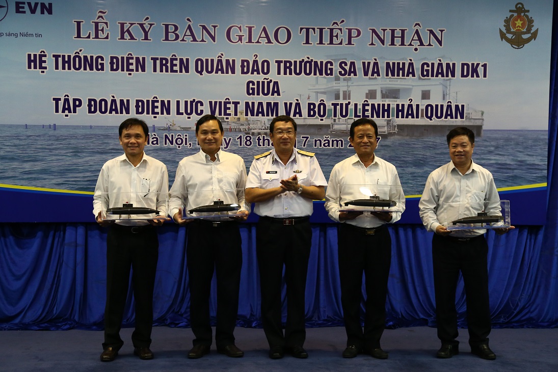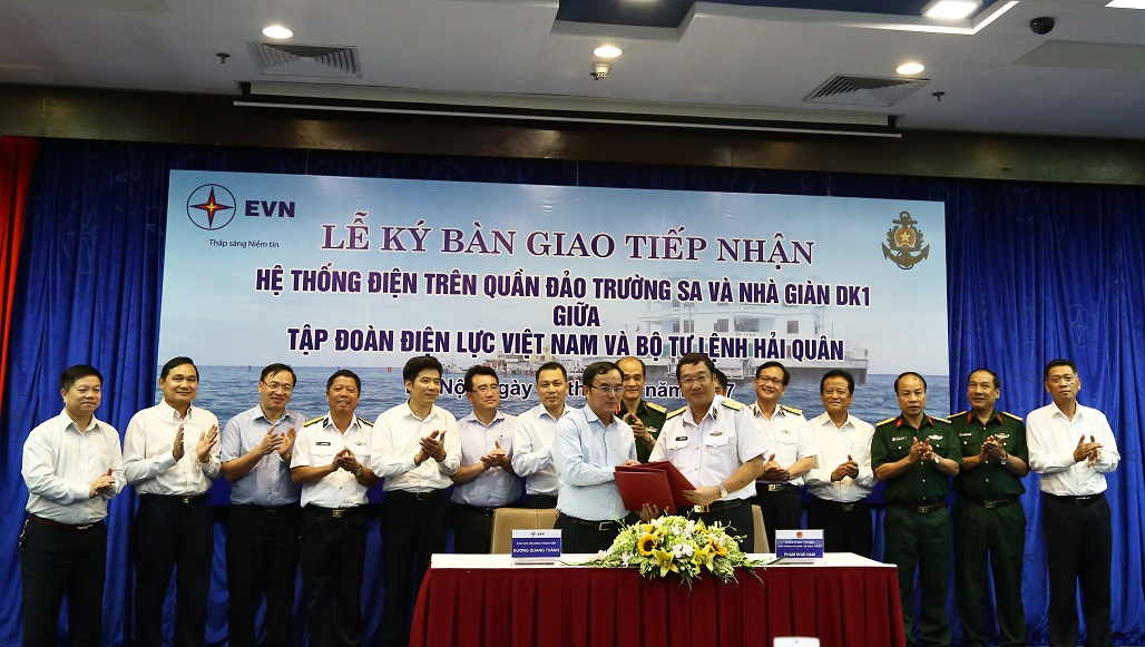Chiều 18-7, tại Hà Nội, Tập đoàn Điện lực Việt Nam (EVN) và Bộ Tư lệnh Hải quân đã tổ chức Lễ ký kết bàn giao, tiếp nhận hệ thống năng lượng sạch và chiếu sáng trên huyện đảo Trường Sa, tỉnh Khánh Hòa và Nhà giàn DK trên thềm lục địa phía Nam của Tổ quốc.