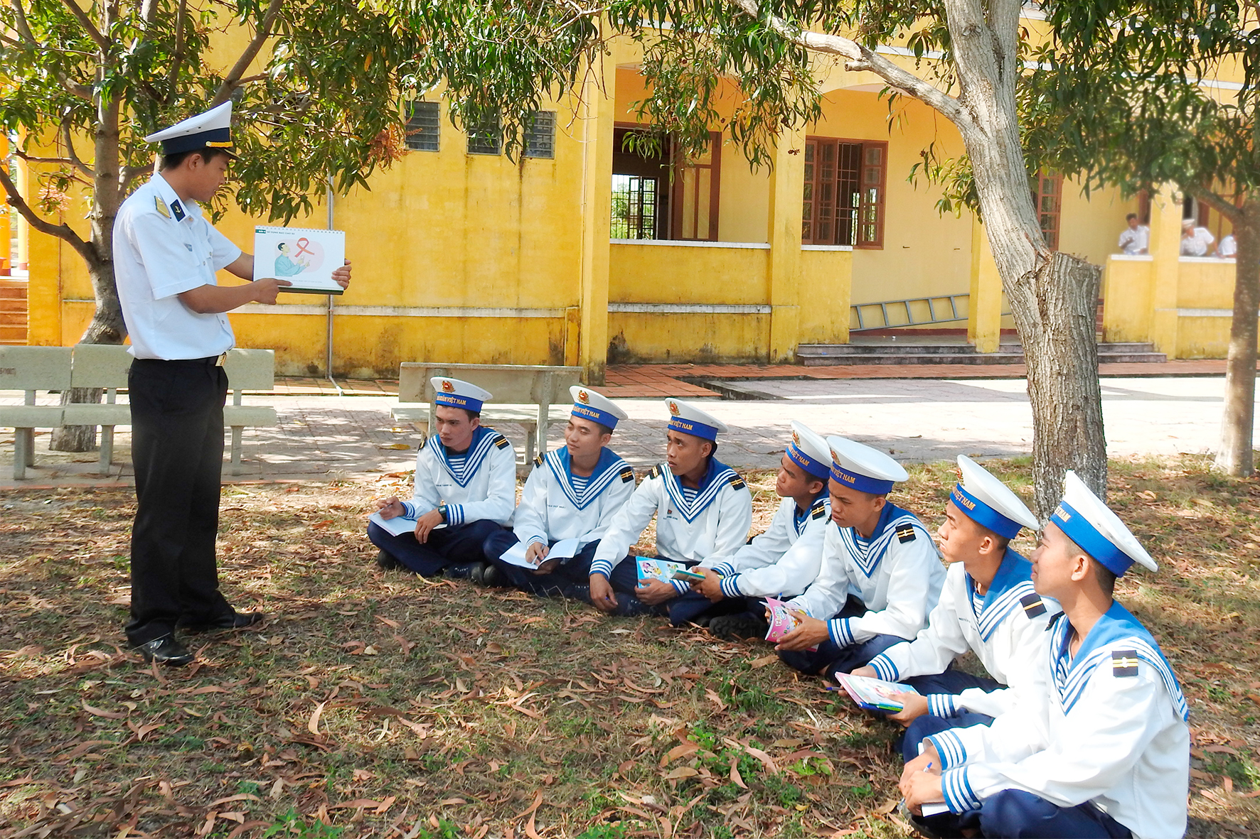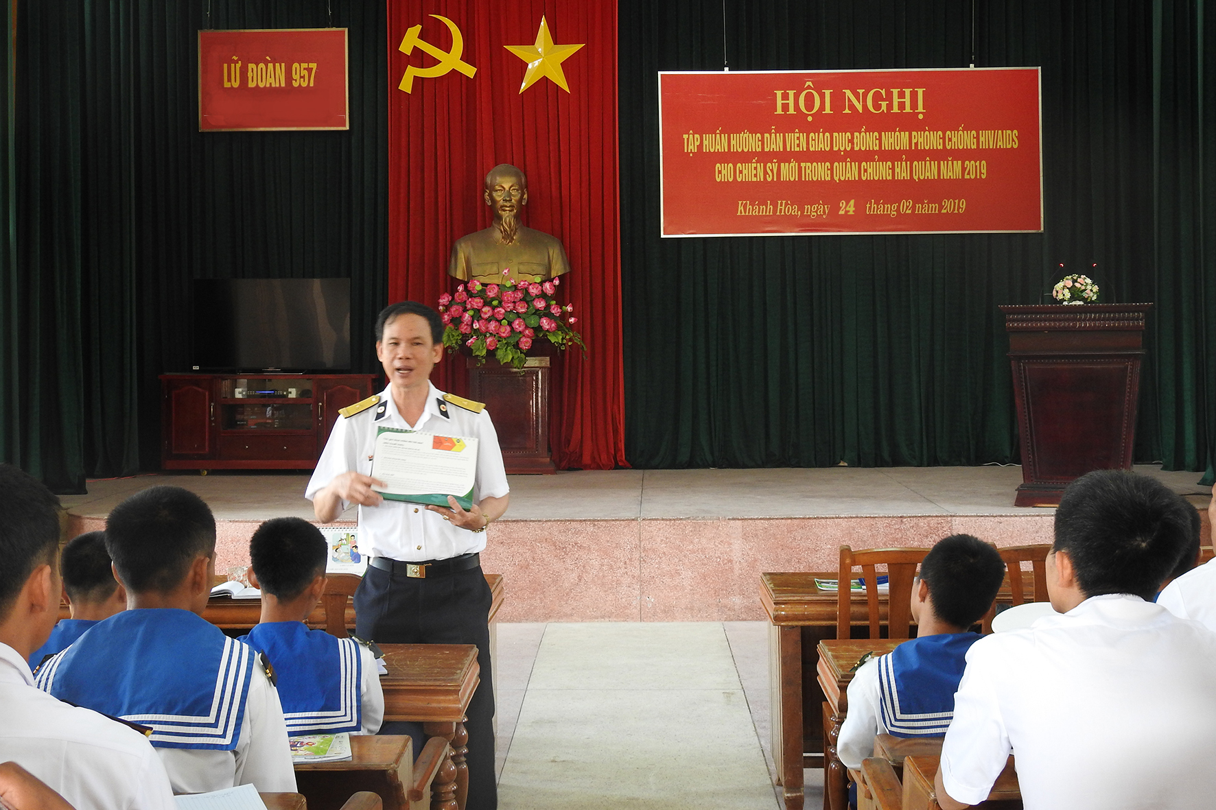 Ngày 24-2, tại TP. Cam Ranh, tỉnh Khánh Hòa, Cục Hậu cần Hải quân phối hợp với Lữ đoàn 957, Vùng 4 Hải quân tổ chức tập huấn Hướng dẫn viên giáo dục đồng nhóm phòng chống HIV/AIDS cho chiến sĩ mới năm 2019.
