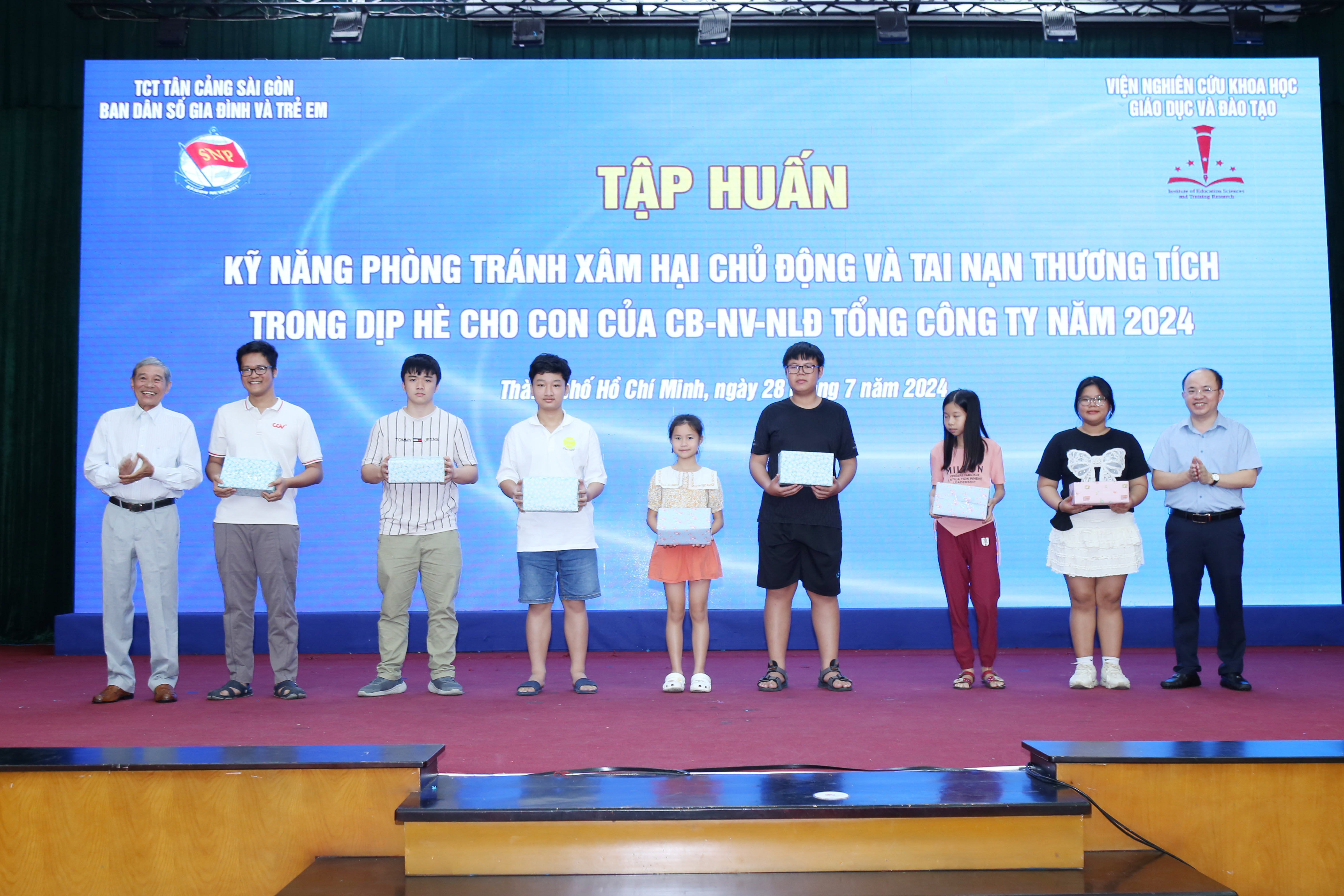 Ngày 28/7, tại TP. Hồ Chí Minh, Ban Dân số, gia đình và trẻ em Tổng công ty Tân cảng Sài Gòn phối hợp với Viện Nghiên cứu khoa học giáo dục và đào tạo TP. Hồ Chí Minh tổ chức tập huấn kỹ năng phòng tránh xâm hại chủ động và tai nạn thương tích trong dịp hè cho các cháu từ 5 đến 15 tuổi là con của cán bộ, người lao động trong hệ thống.