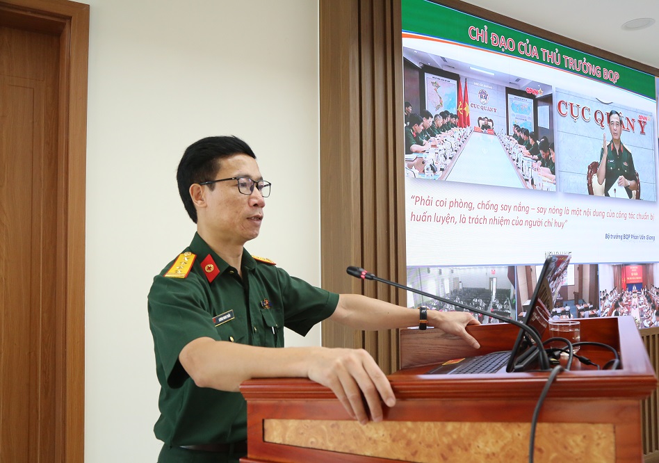 Các đồng chí giáo viên đã đưa ra nhiều thông tin về nguyên nhân và yếu tố nguy cơ khi bộ đội hoạt động trong điều kiện nắng nóng, cơ thể mất nước, rối loạn điện giải; người chưa thích nghi với môi trường nắng nóng… đồng thời đưa ra các biện pháp dự phòng trước, trong huấn luyện; tuyên truyền cho bộ đội hiểu biết và nhận biết những dấu hiệu đầu tiên khi đồng đội bị say nắng, say nóng…