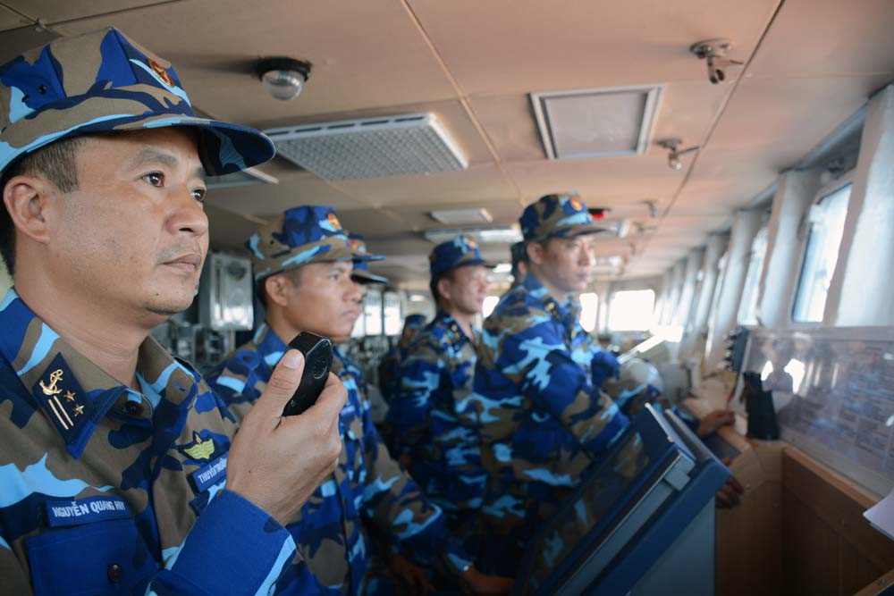Sĩ quan chỉ huy Tàu 011 Đinh Tiên Hoàng chỉ huy tàu nhổ neo tới vị trí tập kết, chuẩn bị diễn tập