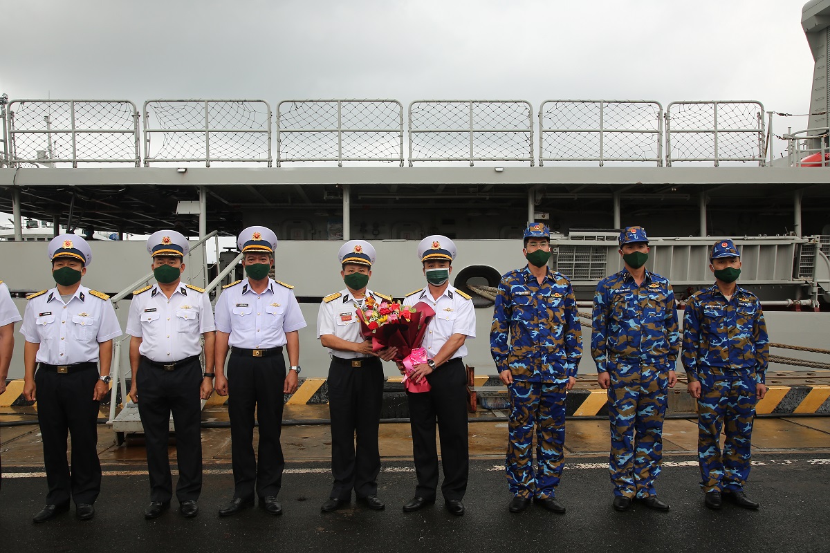 Thủ trưởng Bộ Tư lệnh Vùng 4 Hải quân Việt Nam tặng hoa đoàn công tác trước giờ lên đường làm nhiệm vụ