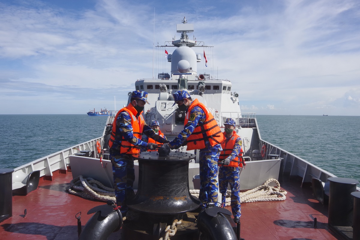 Sĩ quan hoa tiêu Hải quân Indonesia hướng dẫn luồng giúp Tàu 012-Lý Thái Tổ cập cảng Balawan