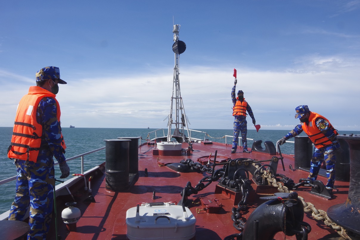 Làm công tác chuẩn bị thả neo tại khu vực biển Belawan