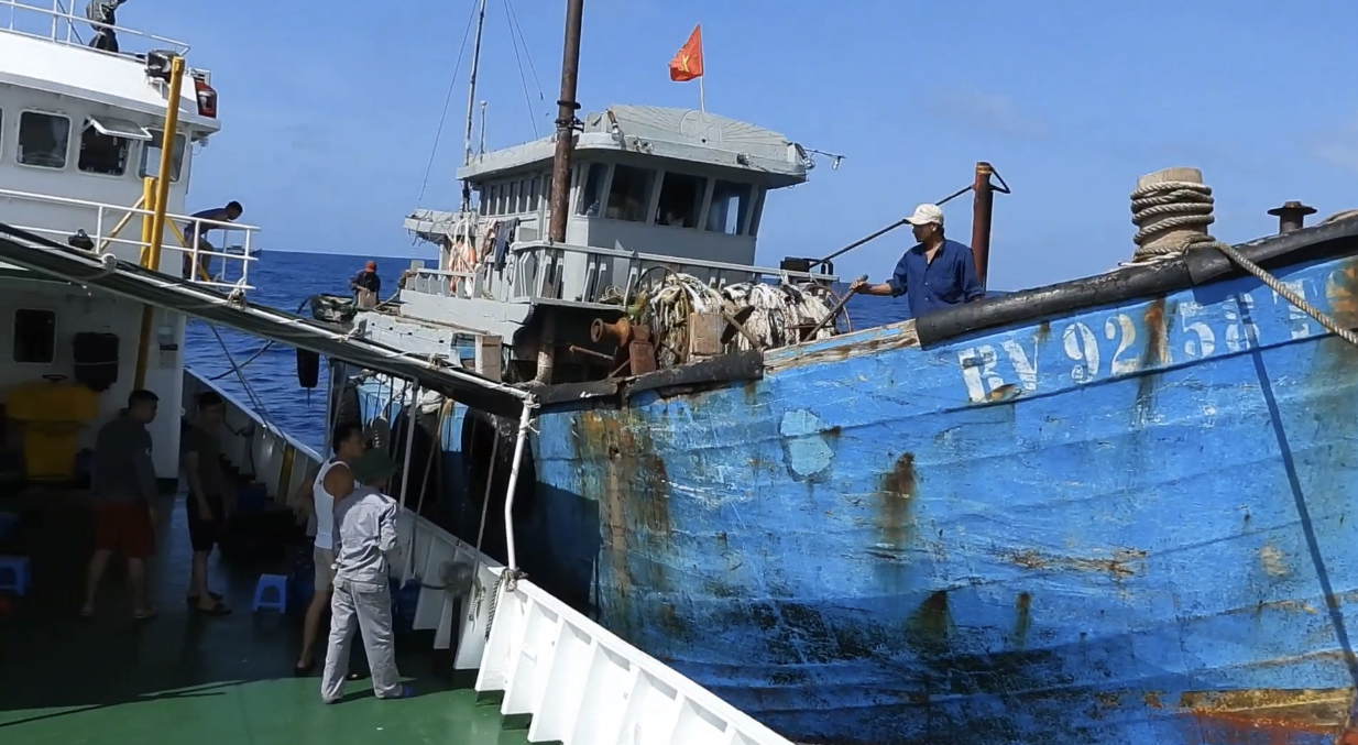 *Cùng ngày, Tàu 205 tiếp tục nhận được tín hiệu hỗ trợ từ tàu cá BV 92158 TS. Ngư dân cần hỗ trợ y tế là anh Văn Xuân Long.