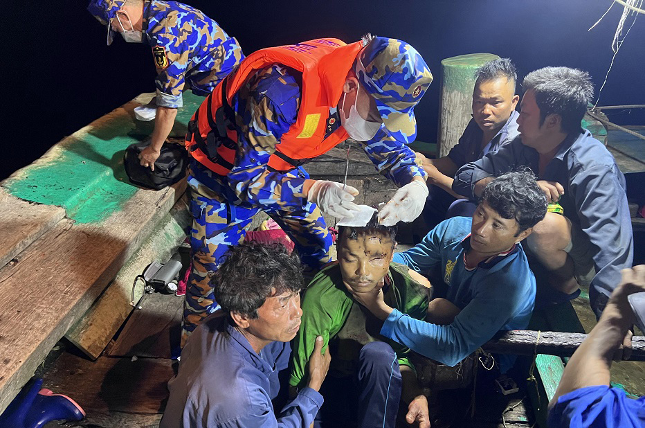 Đến 19 giờ 30 phút cùng ngày, Tàu 215 đã tiếp cận được tàu cá; tổ quân y khẩn trương sang tàu cá, tiến hành cấp cứu bệnh nhân bị thương ở vùng đầu, vai trái, vẫn còn tỉnh táo.