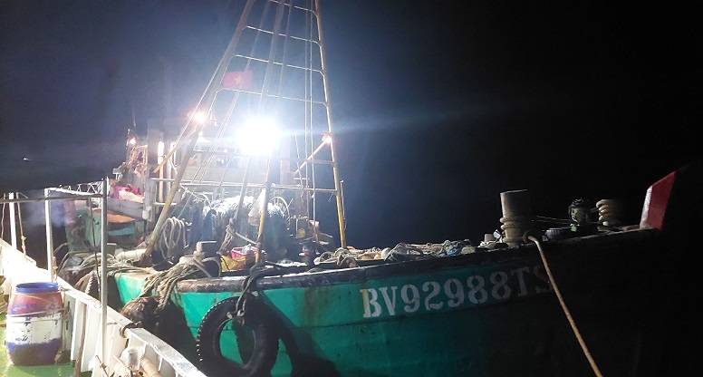 Mặc dù ban đêm, sóng to gió lớn, tầm nhìn hạn chế nhưng với tinh thần “tính mạng ngư dân là trên hết”, cán bộ, nhân viên Tàu 215 quyết tâm cơ động cứu giúp tàu cá trong thời gian nhanh nhất.