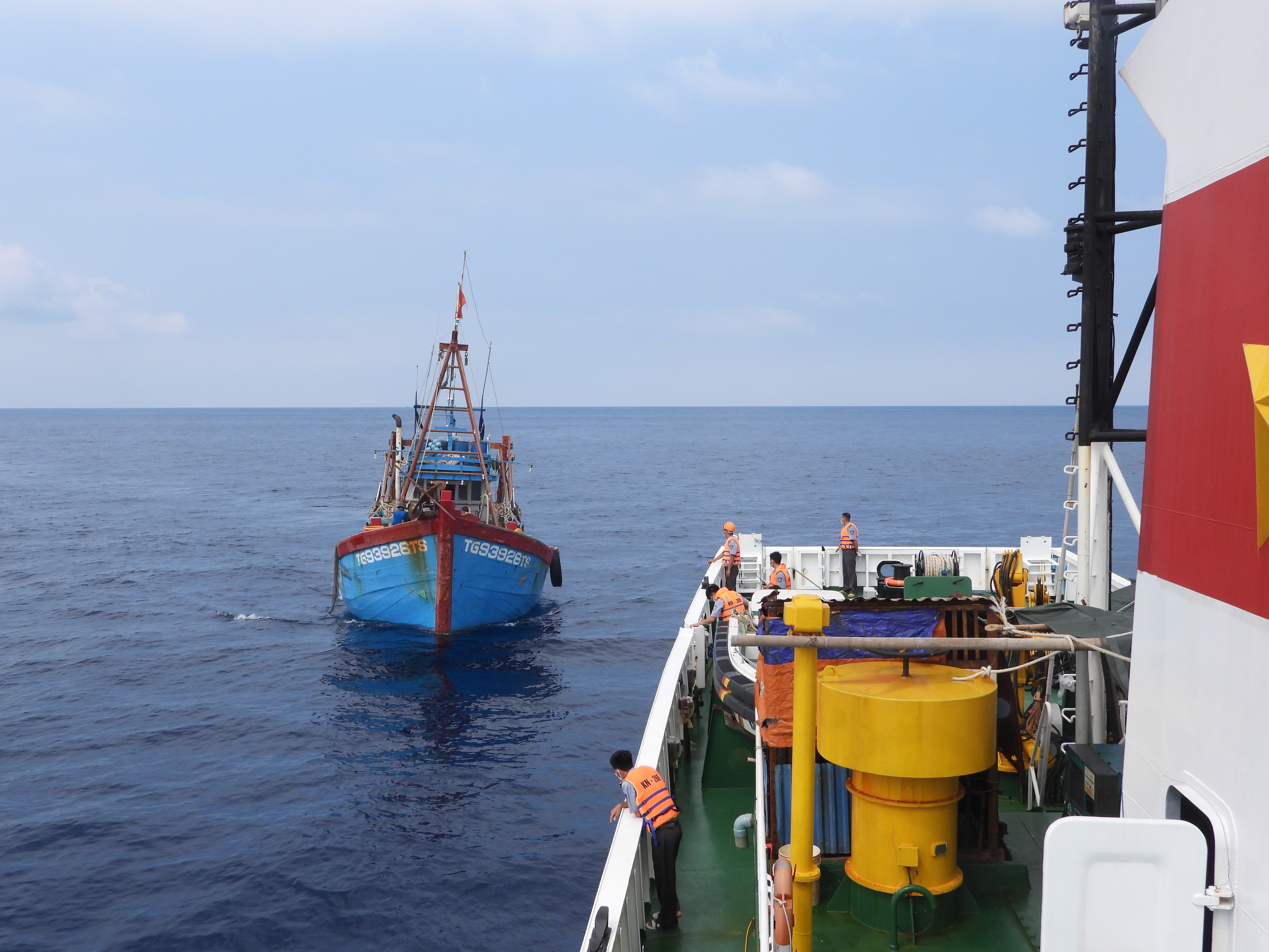 9 giờ ngày 11-3, Tàu 266, Chi đội kiểm ngư số 2 đang thực hiện nhiệm vụ trên biển thì nhận được tín hiệu cấp cứu từ tàu cá TG 93926 TS.