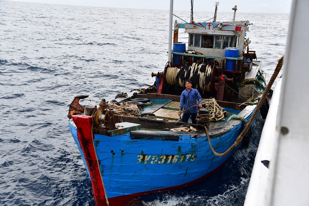 Ngư dân bị nạn là anh Nguyễn Văn Kiên, sinh năm 1982, quê ở Nam Định. Anh Kiên khi đang thu lưới cào không may bị tời lưới văng vào miệng làm rách 3cm cuống lưỡi, máu ra nhiều, người mệt lả.