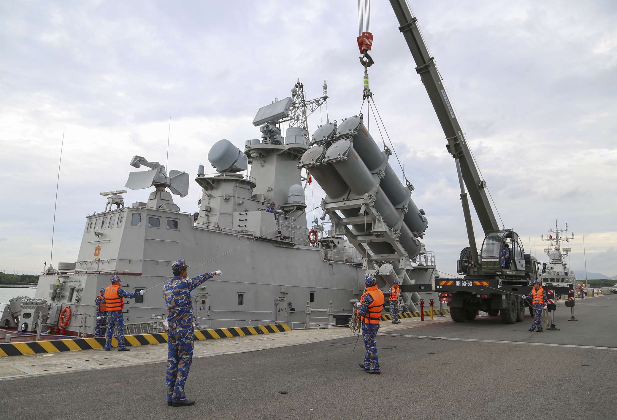 Tàu 383 huấn luyện thực hành cẩu nhận tên lửa