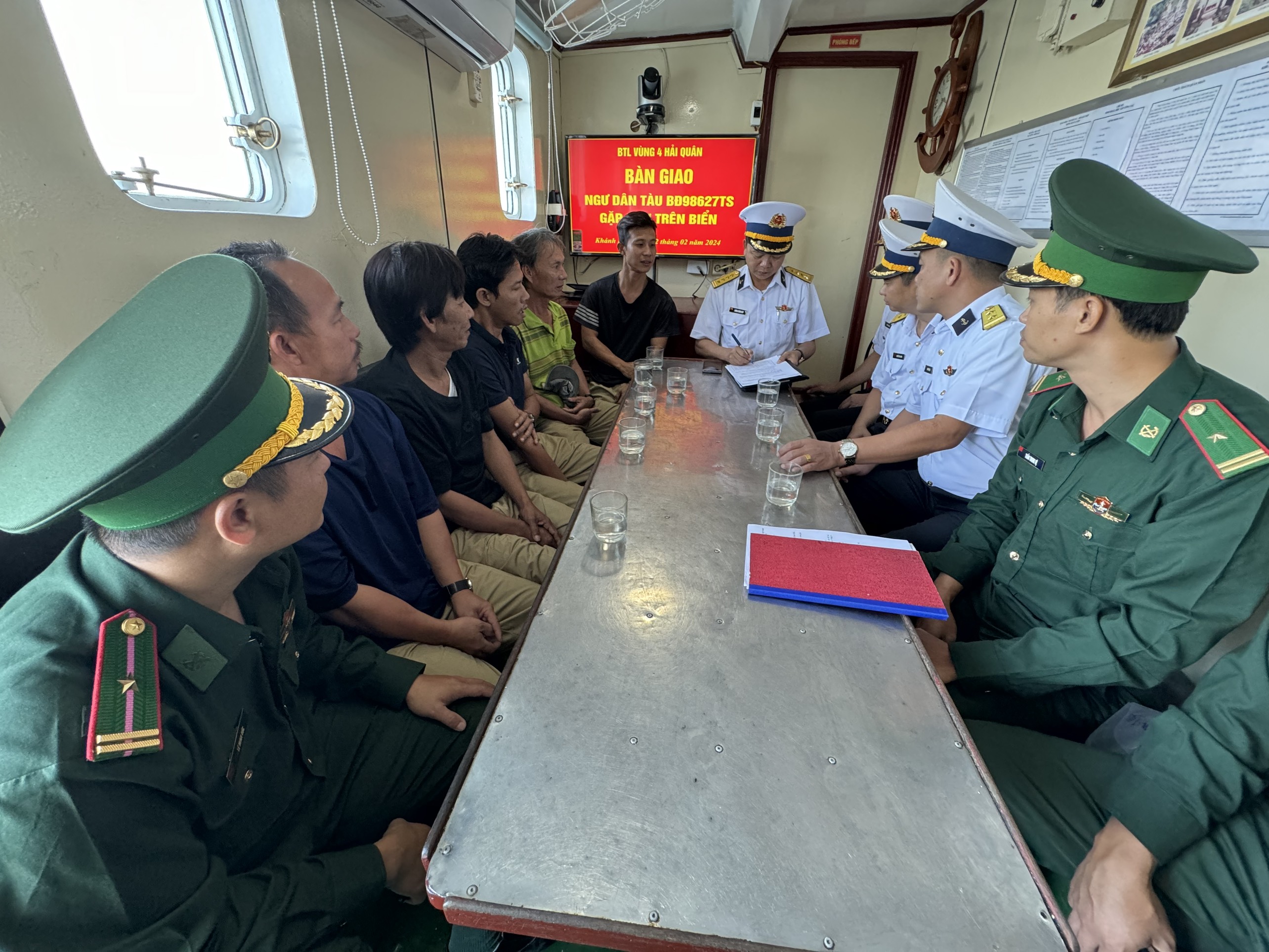 Sau khi tiếp nhận ngư dân, chỉ huy Tàu 408 đã bố trí, sắp xếp nơi ăn nghỉ, chăm sóc sức khỏe cho các ngư dân trong suốt quá trình cơ động vào đất liền.