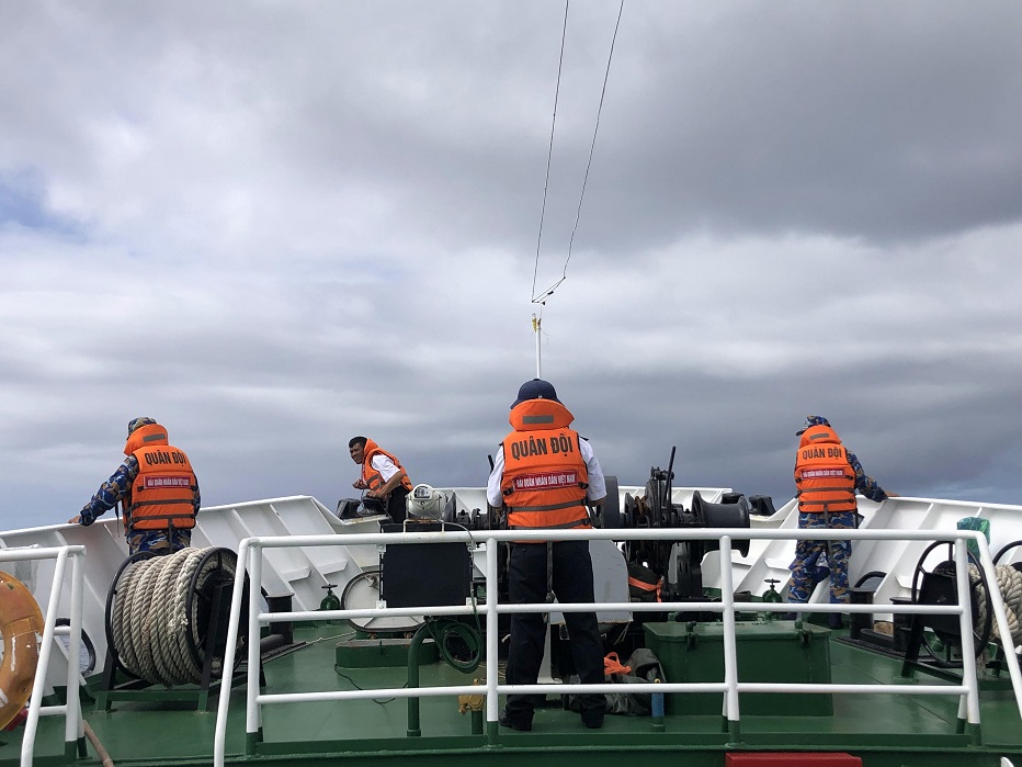 Tàu 409 khẩn trương tiếp cận, vừa triển khai các phương án cứu kéo vừa phải bảo đảm an toàn, không để bị hư hỏng tàu của ngư dân.