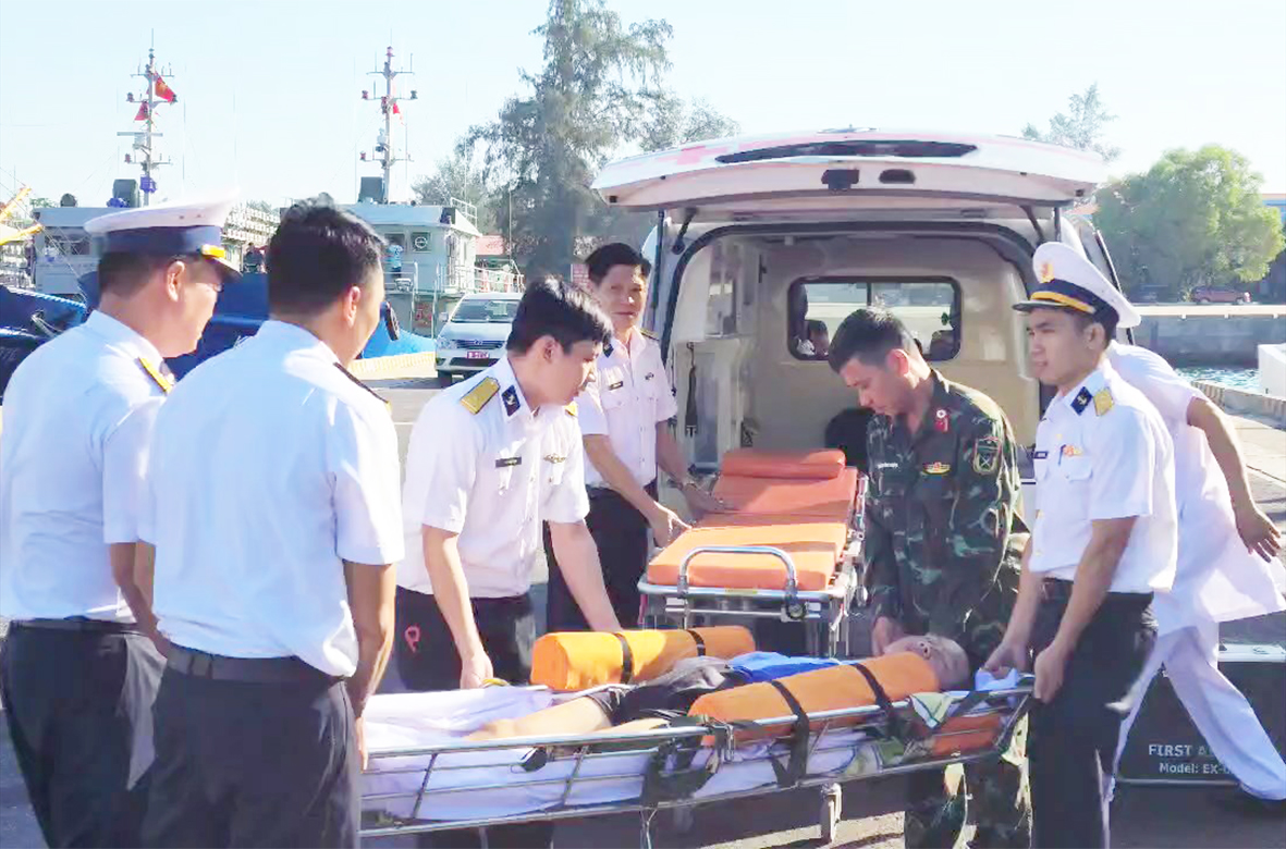 Trước đó, Trung tâm y tế thị trấn Trường Sa tiếp nhận bệnh nhân Huỳnh Văn Luận trong tình trạng tỉnh táo, tiếp xúc chậm, theo chẩn đoán của các bác sĩ thì bệnh nhân bị thiếu máu mức độ nặng, xuất huyết tiêu hóa. Các y bác sĩ của Trung tâm đã tiến hành cấp cứu, truyền máu cho bệnh nhân.