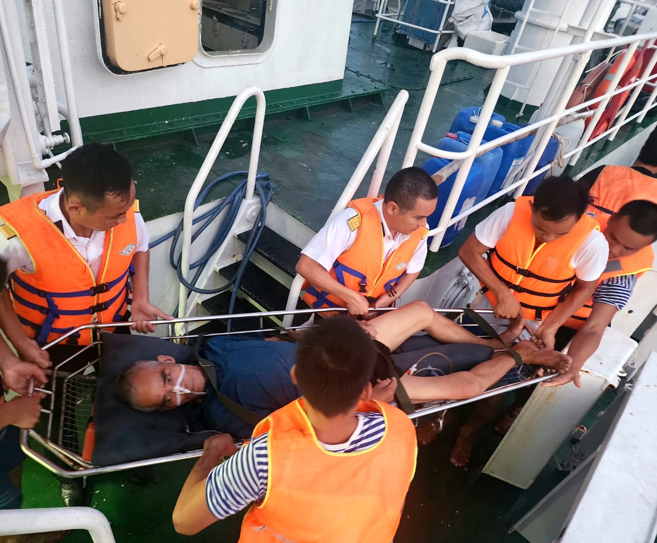 Tàu 466 kịp thời chuyển ngư dân về Trung tâm Y tế thị trấn Trường Sa điều trị bệnh