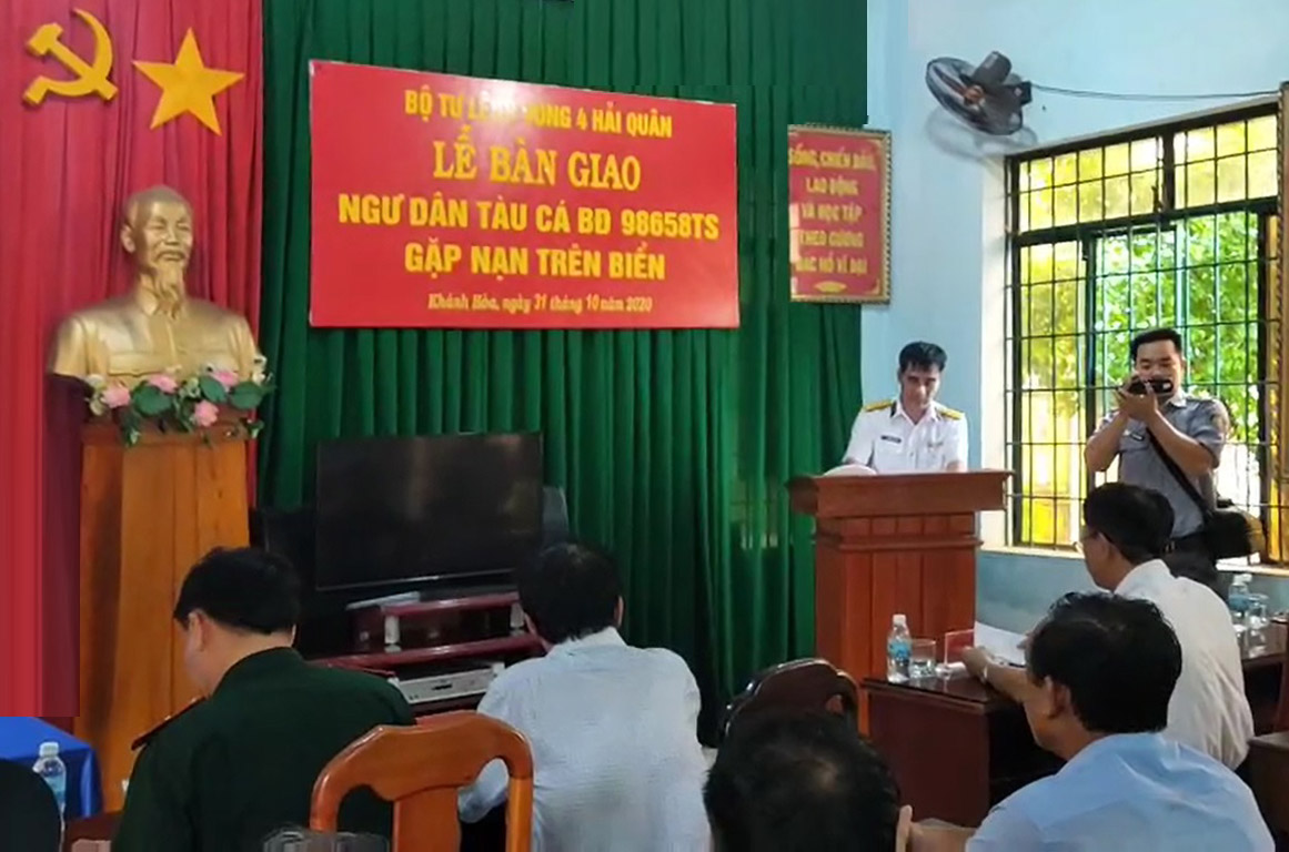 Tham gia buổi bàn giao có thủ trưởng Sở Chỉ huy tìm kiếm cứu nạn phía trước của Quân chủng Hải quân; ông Nguyễn Chí Công, Phó Chủ tịch UBND thị xã Hoài Nhơn, tỉnh Bình Định; đại diện gia đình chủ tàu và Chi đội Kiểm ngư số 4.
