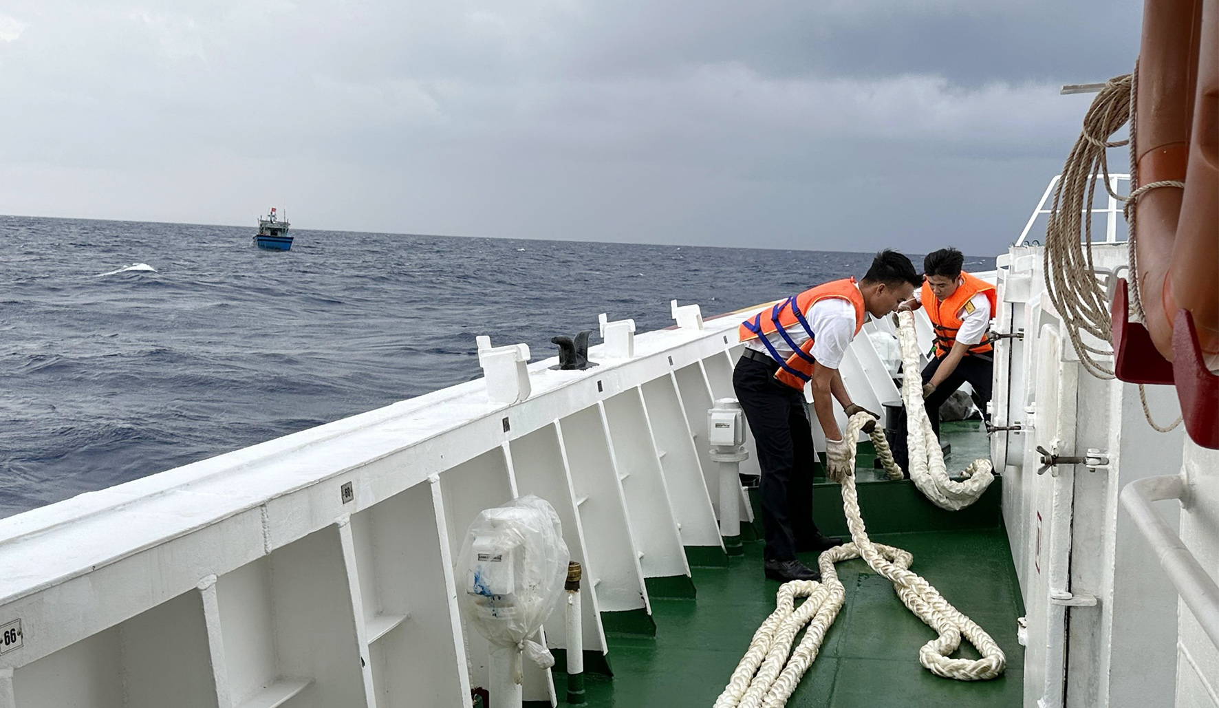 Tàu 468 hỗ trợ lai kéo tàu cá bị hỏng máy trên vùng biển Trường Sa