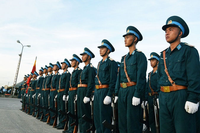 Đội danh dự Quân chủng PK-KQ chuẩn bị đón tàu tại cảng