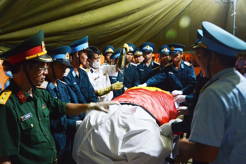 Trước đó, các thi thể phi hành đoàn máy bay Casa 212 gặp nạn đã được các lực lượng tìm kiếm của Quân chủng Hải quân và các lực lượng phối thuộc phát hiện, đưa lên Tàu bệnh viện 561 bảo quản ở khoang lạnh của tàu và đưa vào bờ hôm nay.