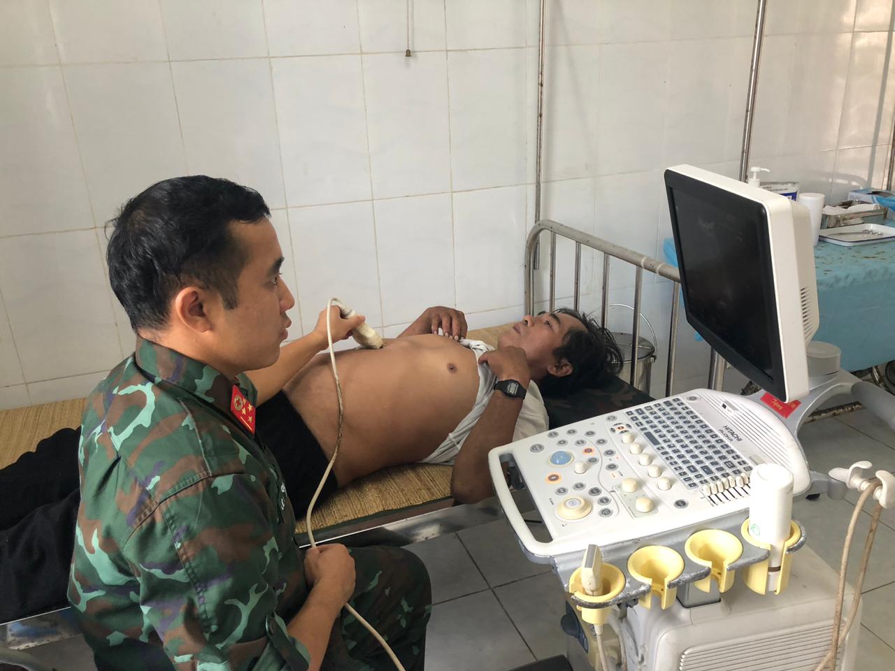 Bác sĩ Bệnh xá đảo Song Tử Tây thăm khám cho bệnh nhân Truyền