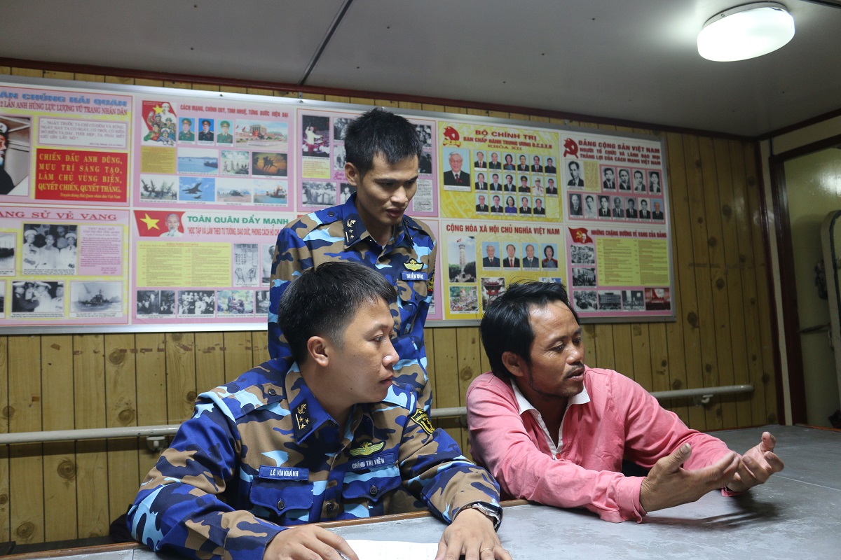 Cán bộ Tàu 632 trao đổi thông tin với ngư dân gặp nạn
