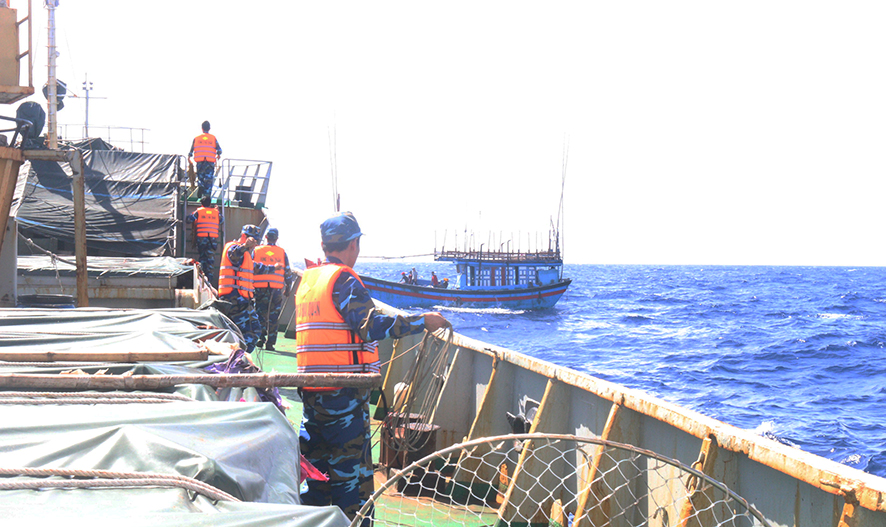 Tàu 635 tiếp cận tàu cá QNg 98855 TS