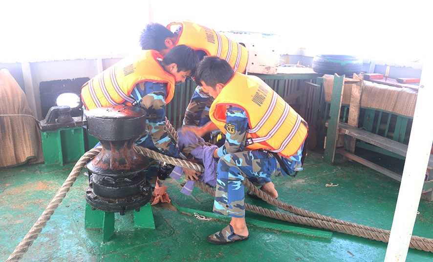 Thủy thủ Tàu 635 làm dây lai kéo Tàu QNg 98855 TS