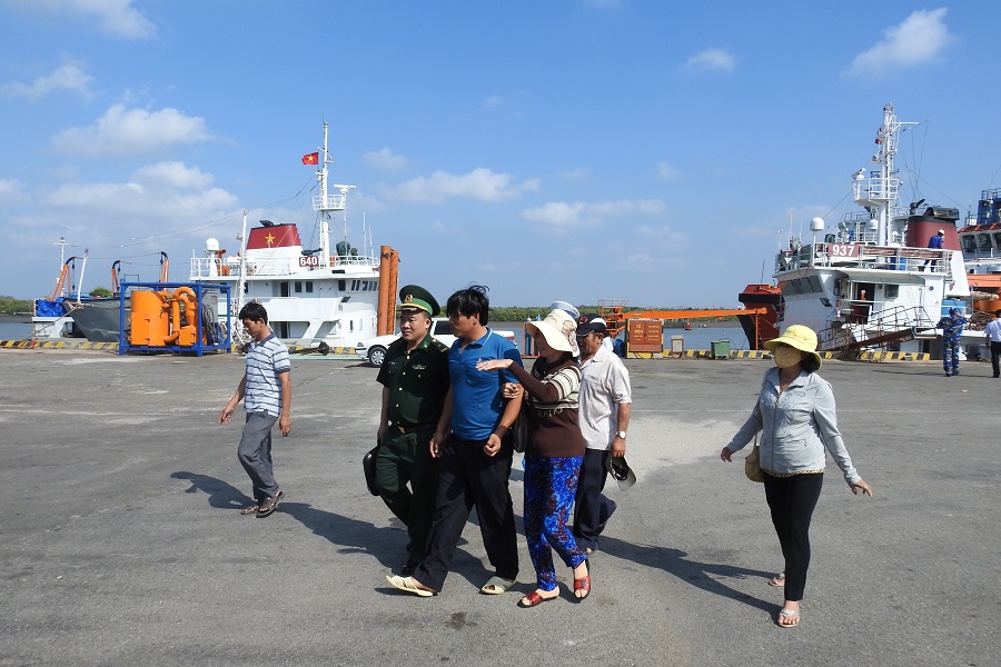 Sau 30 giờ hành trình, 8 giờ sáng nay (ngày 19-3) Hải đoàn 129 Hải quân đã tổ chức bàn giao ngư dân Huỳnh Hoàng Ân cho Bộ đội Biên phòng tỉnh Bà Rịa - Vũng Tàu và gia đình theo đúng thủ tục.