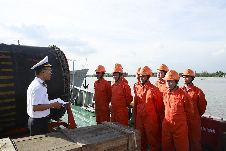 Cán bộ, nhân viên Tàu 703 làm công tác chuẩn bị xuất bến
