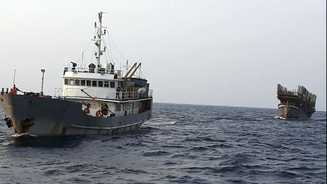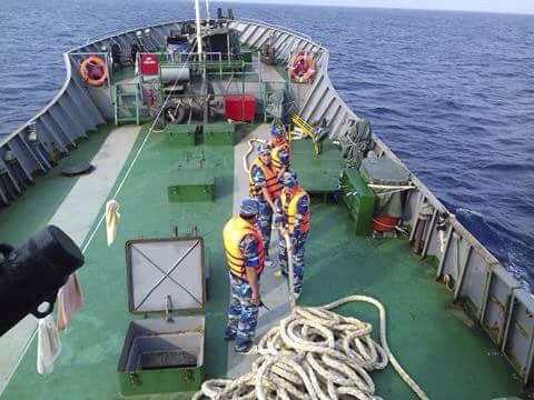 Tàu 736 lai kéo Tàu QNa 90839 TS rời khu vực đảo Song Tử Tây về bờ