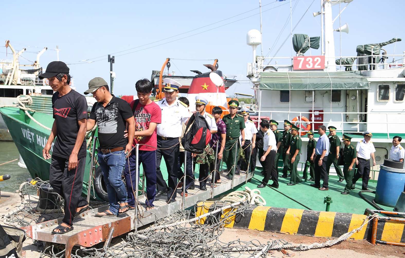 Đơn vị và địa phương đón 7 ngư dân từ tàu lên bờ