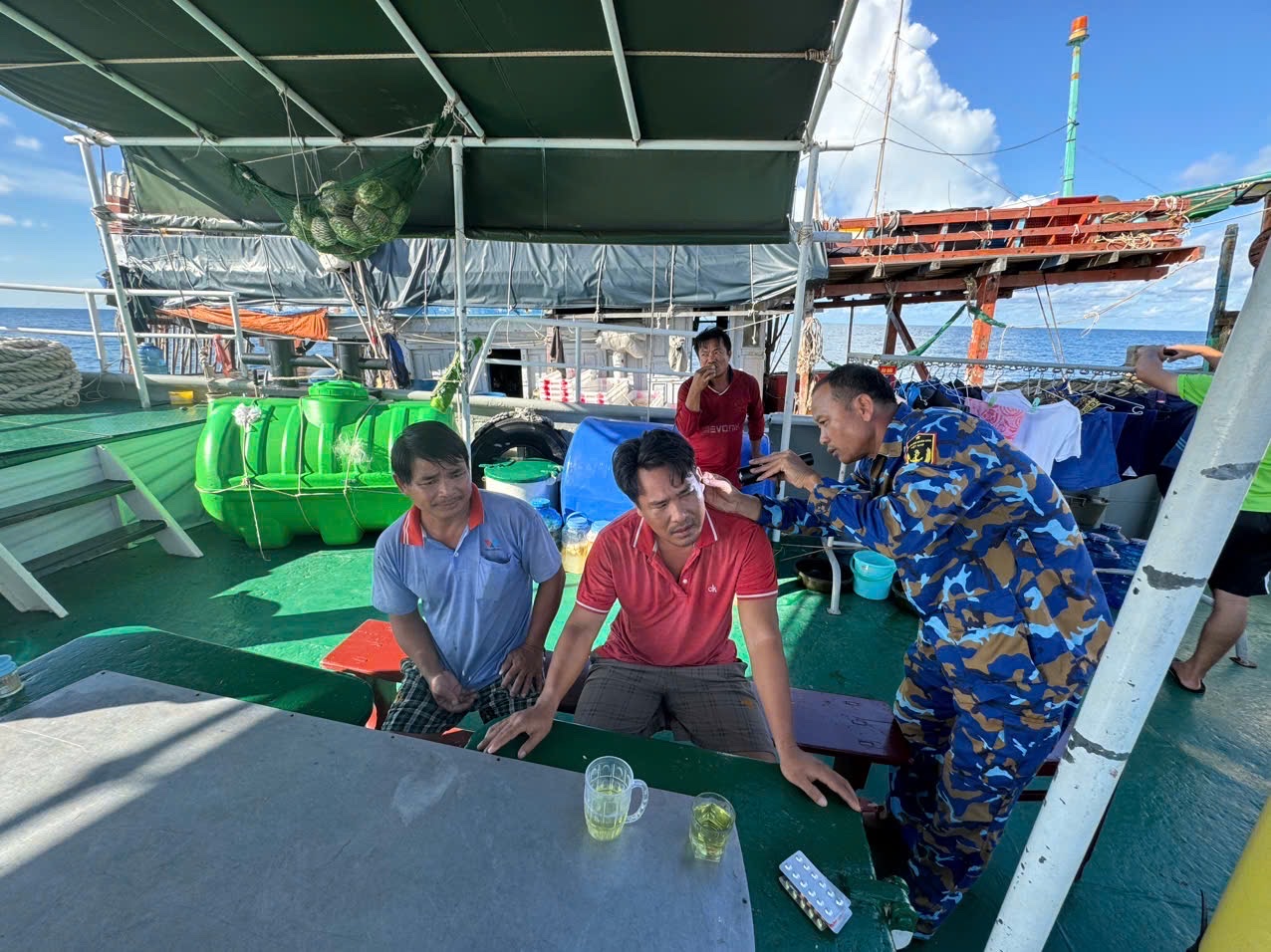 15 giờ ngày 19/8, tại vùng biển Bãi cạn Cà Mau, Tàu 792, Lữ đoàn 127, Bộ Tư lệnh Vùng 5 Hải quân đã tổ chức khám bệnh và cấp thuốc miễn phí cho 3 ngư dân tàu cá Tiền Giang số hiệu TG 92534 TS.