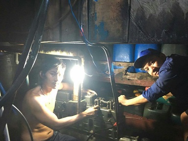 Thợ sửa chữa Tàu 886 cùng ngư dân khắc phục máy tàu PY 96839 TS