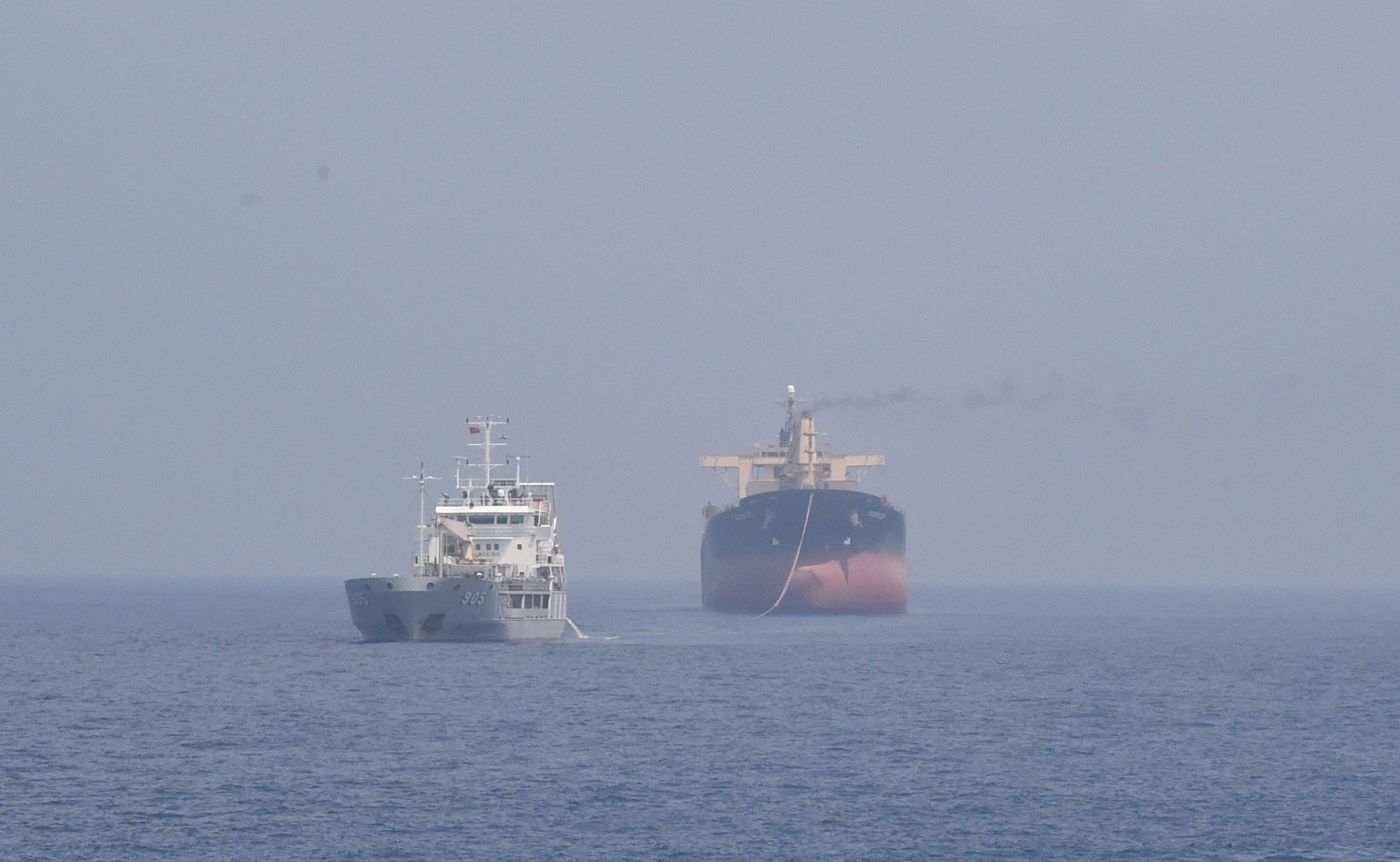 Tàu 905 và KN 464 phối hợp làm dây cứu kéo Tàu Facific 07